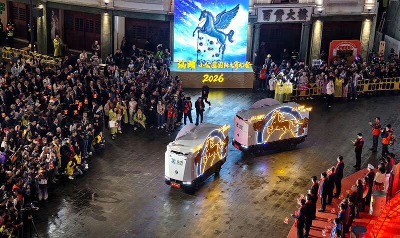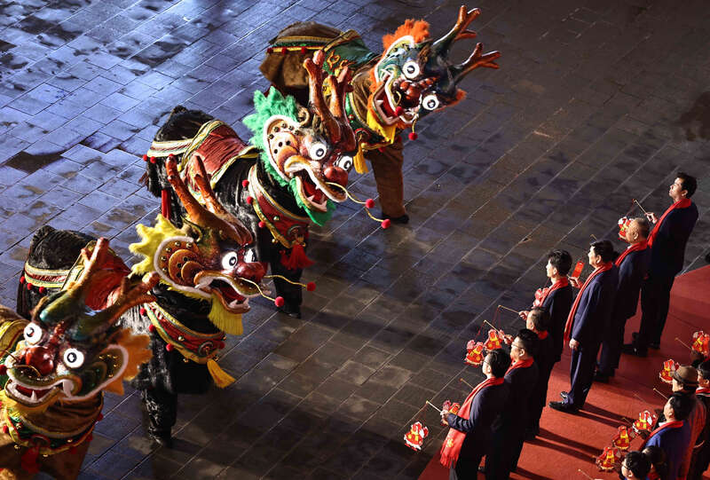 3月3日晚,广东汕头,汕头澄海埔美龙马队表演龙马舞,展现奋发向上的“龙马精神”。刘占崑/摄