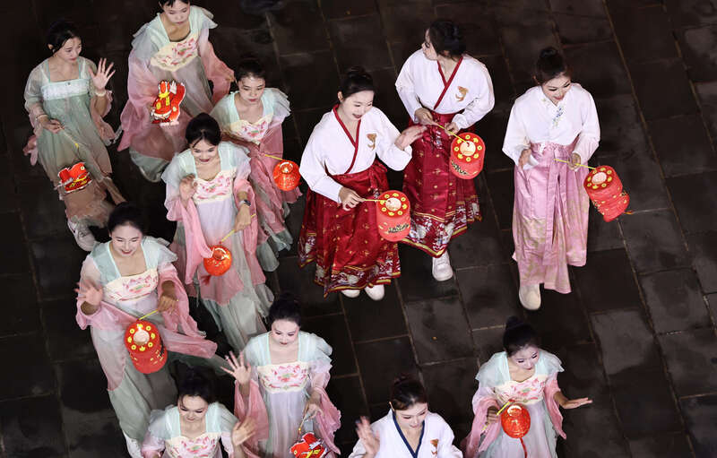3月3日晚,广东汕头,少女们表演花灯舞《马汕有好事》。刘占崑/摄
