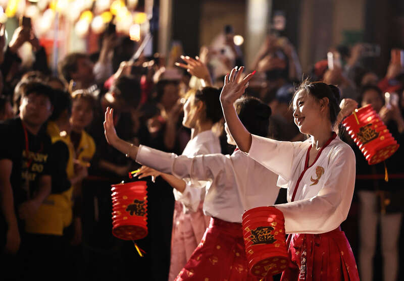 活动设置主题灯展区与民俗活动区两大核心板块,既有天马行空灯组、以梦为马创意气模等光影景致,更有英歌舞、龙马舞、潮剧、杂技等特色队伍沿街区轮番开展巡游展演。在小公园开埠区的骑楼长街上,百姓、百业、百花、百福、百骏五大系列跨街灯笼连缀成阵,潮汕美食、红头船、侨批等元素的主题灯组各具韵味,吸引众多市民游客驻足拍照。