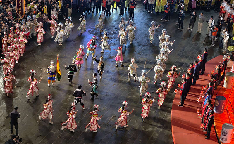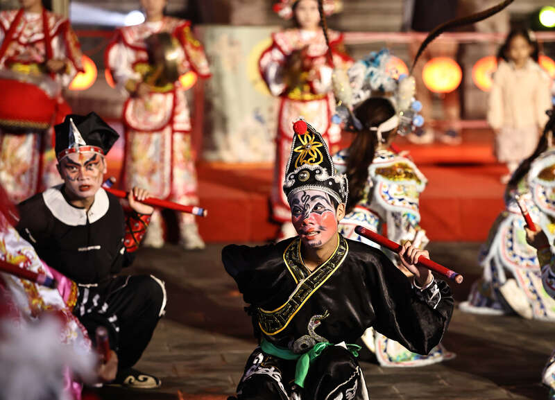 3月3日晚,广东汕头,演员们表演独具汕头特色的英歌舞。刘占崑/摄
