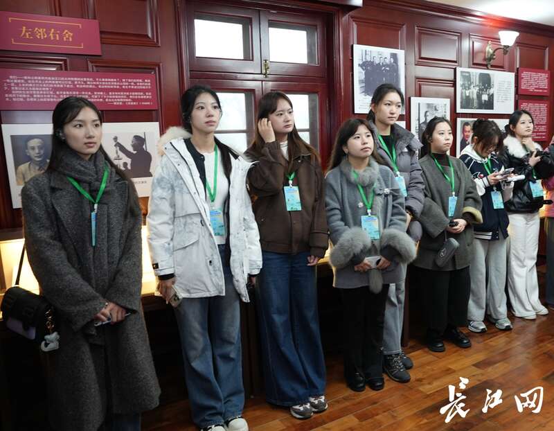 3月1日,“青春华章·行走的大思政课——2026全国大学生社会实践团湖北江苏行”活动走进武汉大学,来自湖北江苏两省10所高校的12名大学生,在珞珈山周恩来旧居展厅的一张照片前驻足。讲解员介绍,照片中周恩来、邓颖超身边由三脚架支起的摄影机,正是1938年著名荷兰电影导演尤里斯·伊文思送给延安八路军的电影摄影机。
