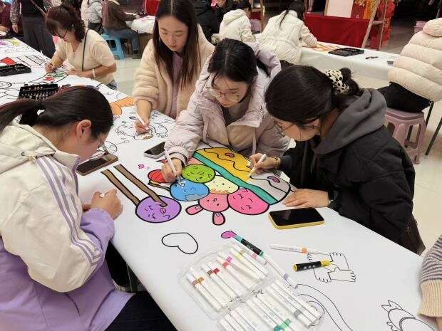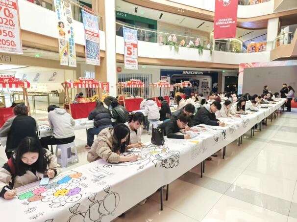 当天,青少年手握彩笔,在百米长卷上发挥创意,画出或捧汤圆或提灯嬉戏的元宵娃娃、穿梭云间的祥龙、腾跃回首的狮子、流光溢彩的花灯、漫天绽放的烟花爆竹,欢庆元宵佳节。
