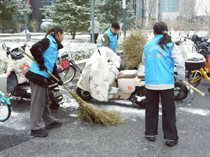 在不同街区,也有八局北京青年的服务身影——故宫北院项目志愿者来到海淀区西玉河沿岸,开展环保清洁行动。大家携带工具清理沿岸垃圾、做好分类处理,同步开展环保宣传;第一、第二分公司号召青年,对公司周边道路、公园座椅、活动广场等区域的积雪积冰进行全面清理。大家干劲十足,挥锹铲冰、清障开路,成为首都街头一道亮丽风景线。