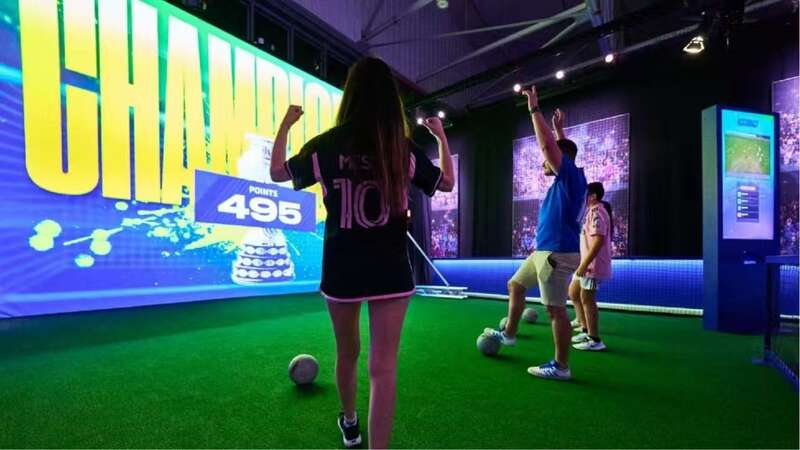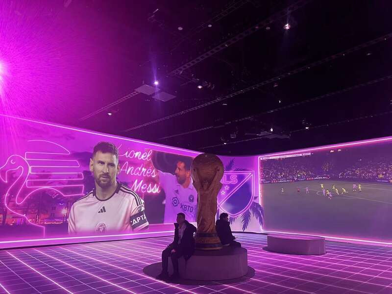 展览总面积2000平方米,设有世界杯荣耀、互动训练、AI更衣室、AR合影与传承等9个沉浸式体验区,结合人工智能、投影映射、360度影像、动态捕捉技术,回顾了梅西职业生涯的重要阶段。观众可通过多维度的互动体验,身临其境地见证梅西从阿根廷罗萨里奥的少年时代出发,在面对挑战与困难时始终坚持信念,最终登上世界足球巅峰并赢得世界杯冠军的传奇历程。