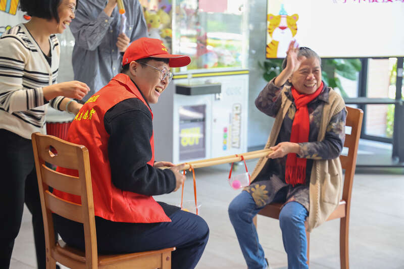 在社工的带领下,一首活力十足的《卡拉永远OK》热身操拉开了活动序幕,长者们随着节奏拍手、摆动,笑容绽放在脸上。院内“千岁鼓乐团”的非洲鼓演奏《走过咖啡屋》节奏明快;朗诵《母亲》的诗句,寄托对天下女性的节日礼赞。在趣味互动游戏环节,志愿者与长者进行知识有奖问答。当《学习雷锋好榜样》《团结就是力量》旋律响起,志愿者与长者们齐声合唱。