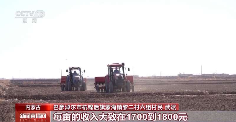 巴彦淖尔市杭锦后旗蒙海镇黎二村六组村民 武斌:种的6000多亩地,其中1000多亩种小麦,享受国家的补贴大致是500元每亩,麦后复种燕麦草,每亩的收入大致在1700到1800元。