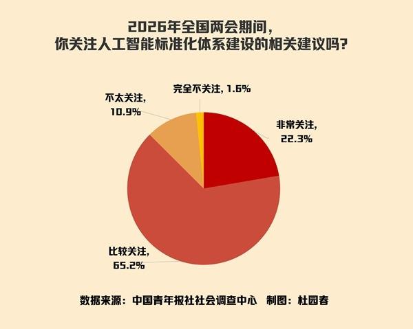 近日,中国青年报社社会调查中心联合问卷网(wenjuan.com)进行的一项有1933人参与的两会调查显示,87.5%的受访者关注人工智能标准化体系建设的相关建议。