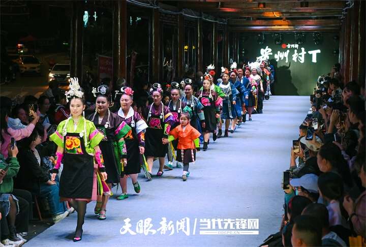 被“村T”照亮的远不止杨佳羽。80岁的潘玉珍、李儒芬“姐妹花”,从“村T”走向纽约时装周,以岁月之美展现非遗魅力;凯里市凯棠镇70多岁的顾彪,在中国国际时装周上,身着苗族服饰、脚蹬草鞋,用木犁扛起小孙女,哼着苗歌自信走秀,迅速走红网络。他们年龄不同、身份各异,却都在“村T”舞台上找到属于自己的光芒,让更多人看见,民族文化是藏在普通人生活里、可触摸、可传承的幸福底色。