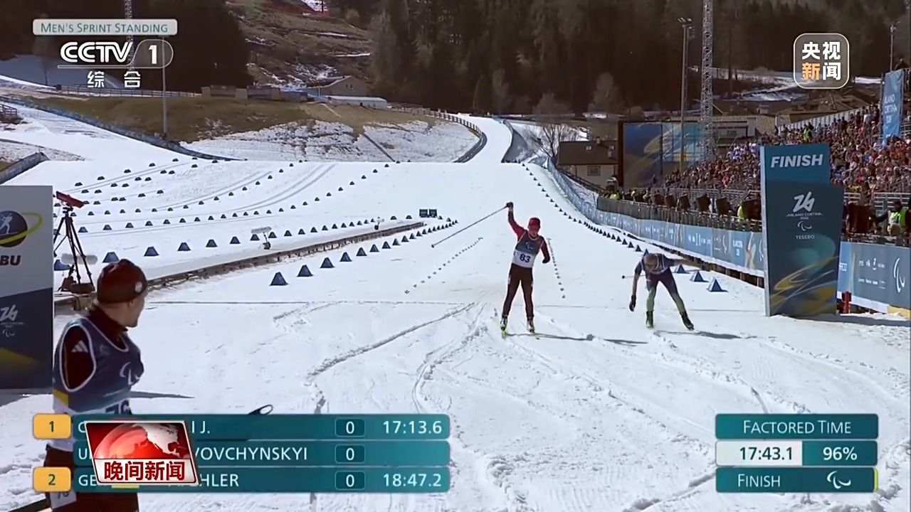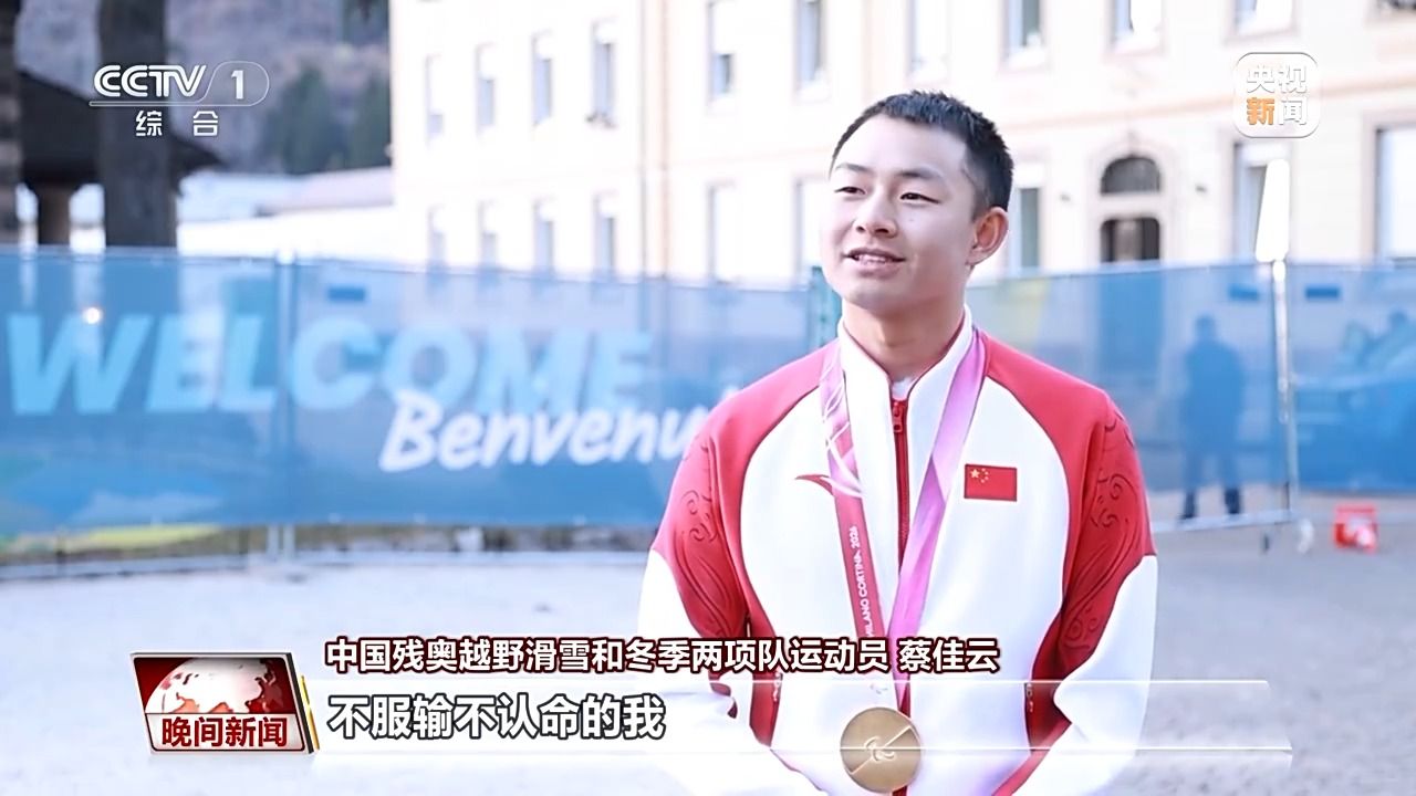 本届冬残奥会开幕后的首个比赛日,中国体育代表团获得2金2银2铜,迎来开门红。在泰塞罗越野滑雪体育场,中国选手蔡佳云在残奥冬季两项男子7.5公里站姿组比赛中夺得冠军,这也是中国体育代表团在本届赛会的首枚金牌。赛后,总台记者对他进行了采访,他说,最满意不服输不认命的自己在赛场上拼搏。