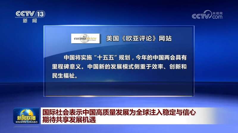 美国《欧亚评论》网站的评论文章认为,中国将实施“十五五”规划,今年的中国两会具有里程碑意义。中国新的发展模式侧重于效率、创新和民生福祉。