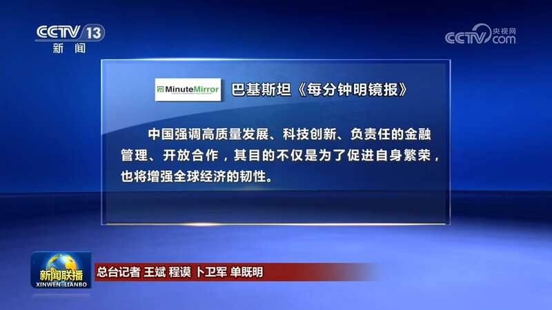 巴基斯坦《每分钟明镜报》报道说,中国强调高质量发展、科技创新、负责任的金融管理、开放合作,其目的不仅是为了促进自身繁荣,也将增强全球经济的韧性。