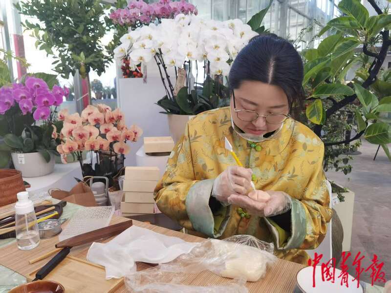 走进春兰大集展区,来自15个省份的1800盆精品兰花争奇斗艳,还有更多兰花文创产品亮相。一款融合了非遗青瓷的香薰,蜡烛内藏7种陶瓷兰花,随烛火燃烧逐渐显露,寓意“香尽兰生”。文创产品中最有童趣的是以勾践种兰、孔子咏兰、屈原佩兰、鲁迅采兰打造的皮影玩具,孩子可边玩边学。
