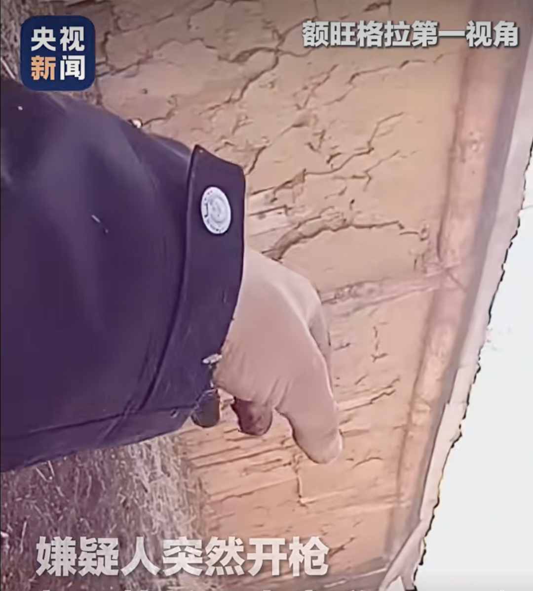 额旺格拉借牛粪堆和木栅栏作为隐蔽物,小心翼翼移动寻找最好的观察点位,为后续抓捕中战友更安全、过程更顺利创造有益条件。不料,狡猾残暴的犯罪嫌疑人察觉异样后,从屋内隐秘处向屋外射击。