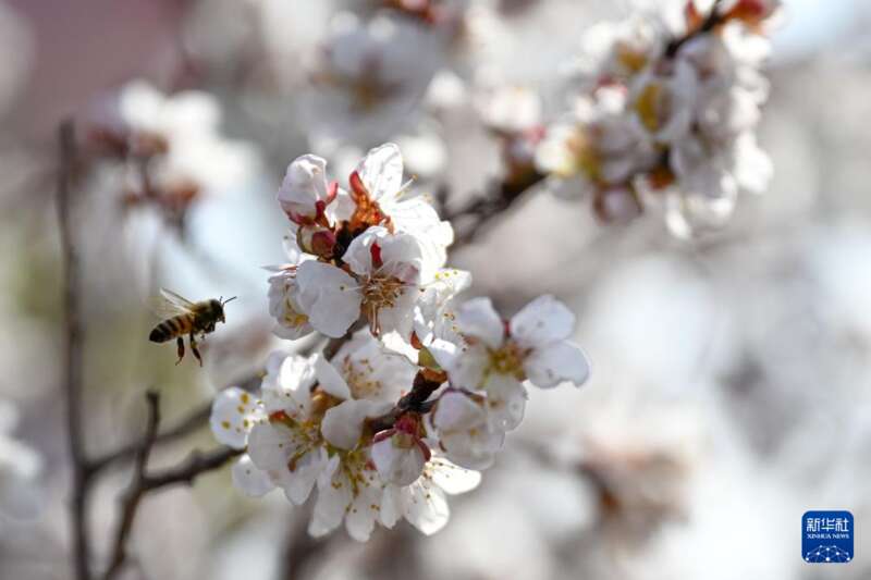 3月20日在新疆吐鲁番市托克逊县南湖杏花村拍摄的杏花。