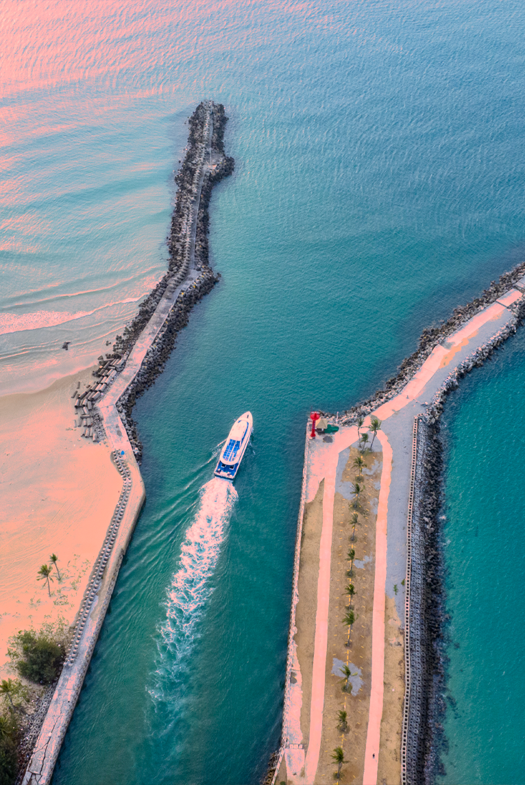 除了海景,在南湾猴岛附近,可以乘坐跨海索道俯瞰成片的疍家渔排,这种“海上村落”是海南沿海少见的人文景观。