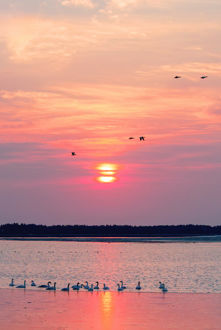 除了“硬核海景”,荣成也有柔和的一面。比如天鹅湖,这是由沙坝围合形成的潟湖,海水与淡水在此交汇。每年冬春之交,大天鹅与海鸥接力出现,人与鸟的距离被大幅拉近,是少见的生态型海岸景观。