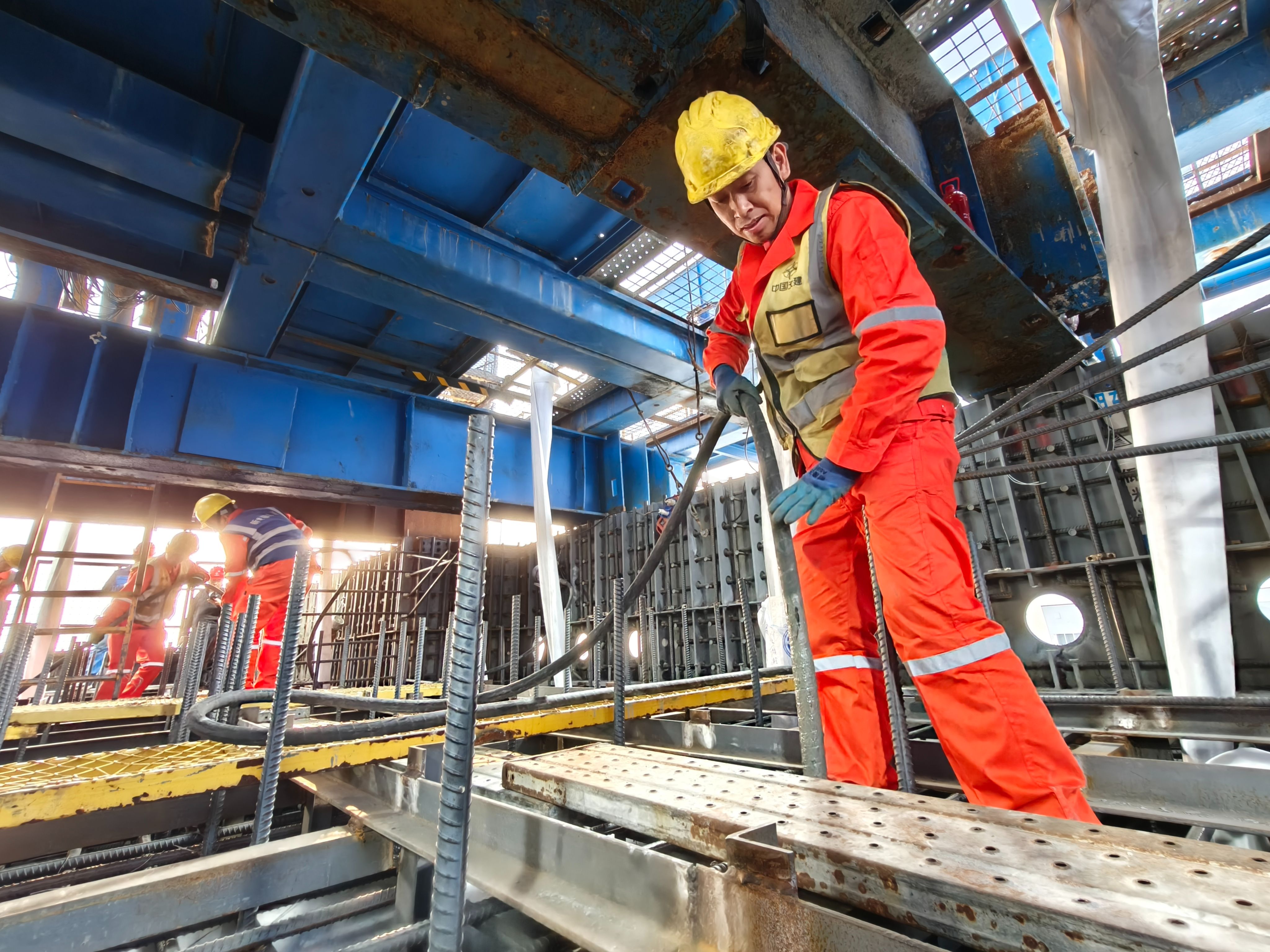 桥塔钢壳节段由工厂自动化生产线预制,运抵现场后采用全球最大移动平衡重塔式起重机R20000-720吊装,配合519种碰撞风险算法,保障极端环境下的毫米级吊装。吊装过程中,北斗高精度定位系统与云端平台实时联动,动态采集数据、规划最优路径,数据回传数字孪生系统复核,形成闭环管控。