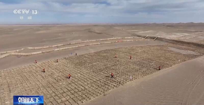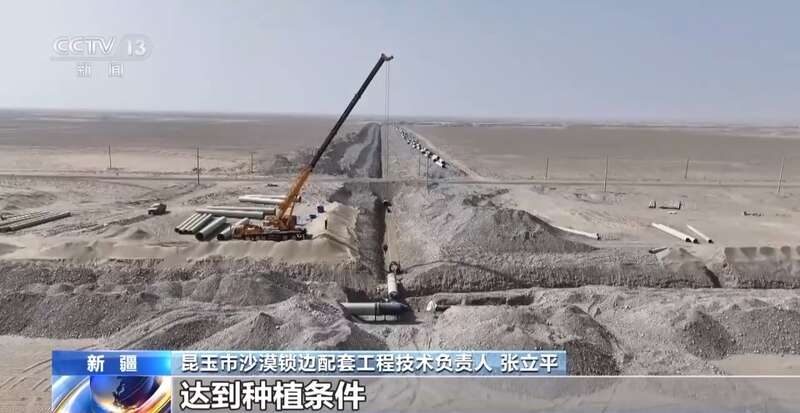 针对沙漠缺水、土壤贫瘠的现状,当地还同时启动滴灌管网的建设和土壤改良等工作,将防风固沙与生态农业深度融合,实现生态与经济效益“绿富同兴”。