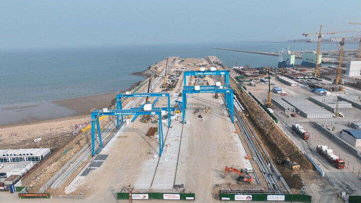 “山东港口装备集团高端海工装备制造基地项目”建设现场。(王飞达 摄)
