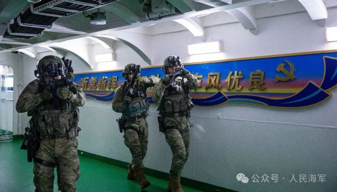 ▲特战队员进行舱室搜索 杜江帆 摄