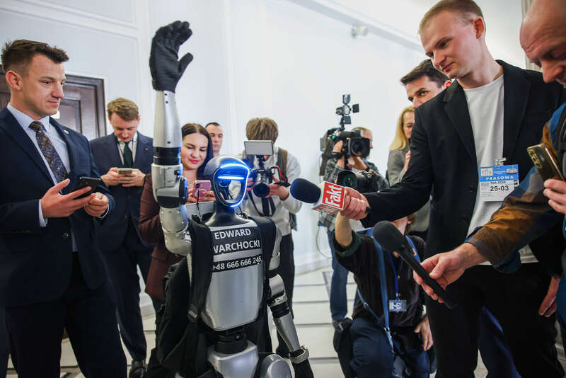 3月25日,波兰华沙,宇树科技人形机器人“Edward Warchocki”参观波兰议会。最近,这款机器人在波兰互联网上走红。视觉中国供图