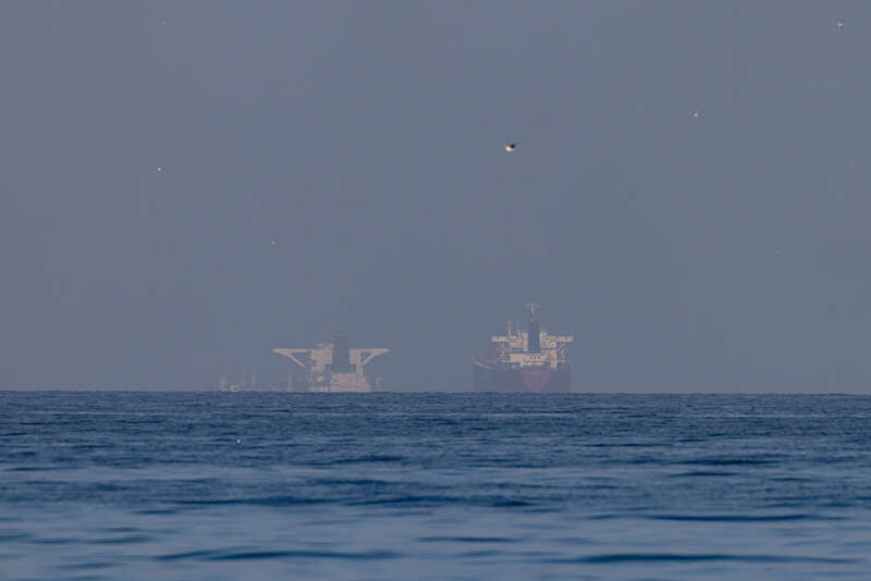3月22日,阿拉伯联合酋长国拉斯海玛,霍尔木兹海峡附近的商业船只。霍尔木兹海峡承担着全球约20%的石油和天然气运输,自2月28日美国和以色列对伊朗发动的军事打击爆发后,该海峡的海上交通基本陷入停滞。视觉中国供图