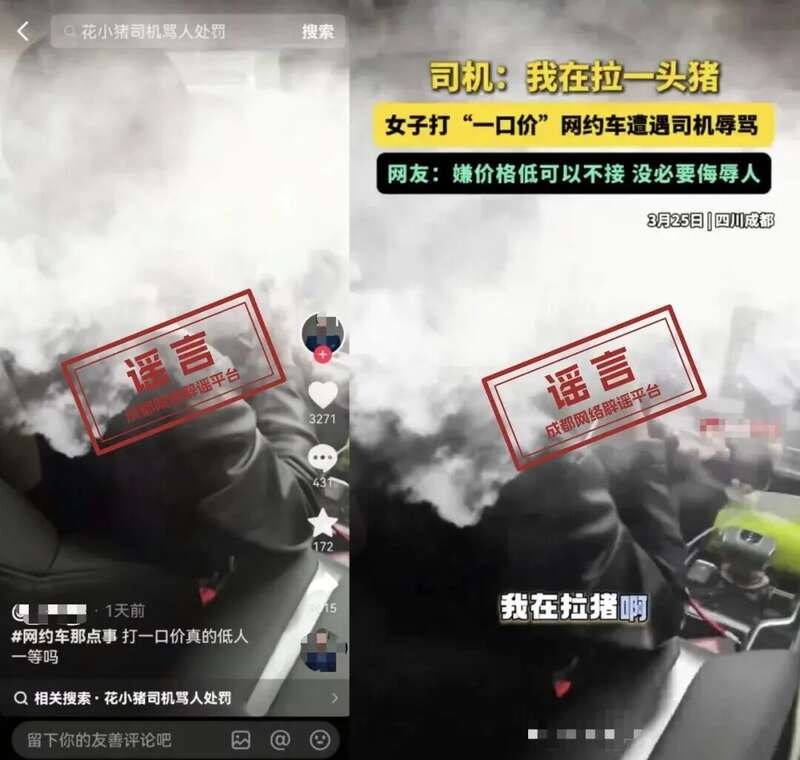 近日,有网民在网络平台发布“女子打一口价网约车遭司机辱骂”相关视频,视频中网约车司机称“我在拉猪”“你打一口价,不是猪是啥子”,并要求乘客中途下车。视频配文地址显示为“四川成都”。相关视频经扩散传播,引发不少网民谴责司机,质疑网约车服务质量、从业人员规范等。