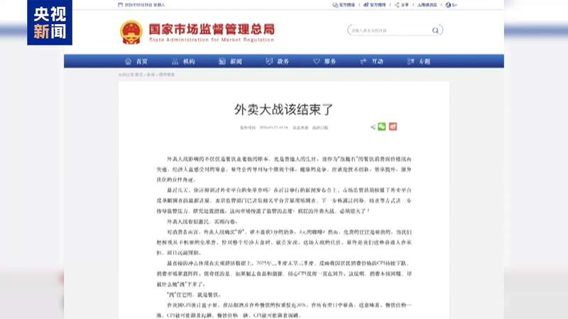 紧接着,国家市场监督管理总局官网刊登媒体文章,明确喊出“外卖大战该结束了”。