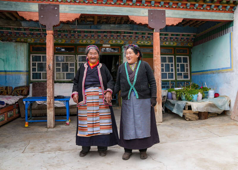 卓玛吾珠(中)和乡亲们在庆祝春耕仪式上(3月16日摄)。