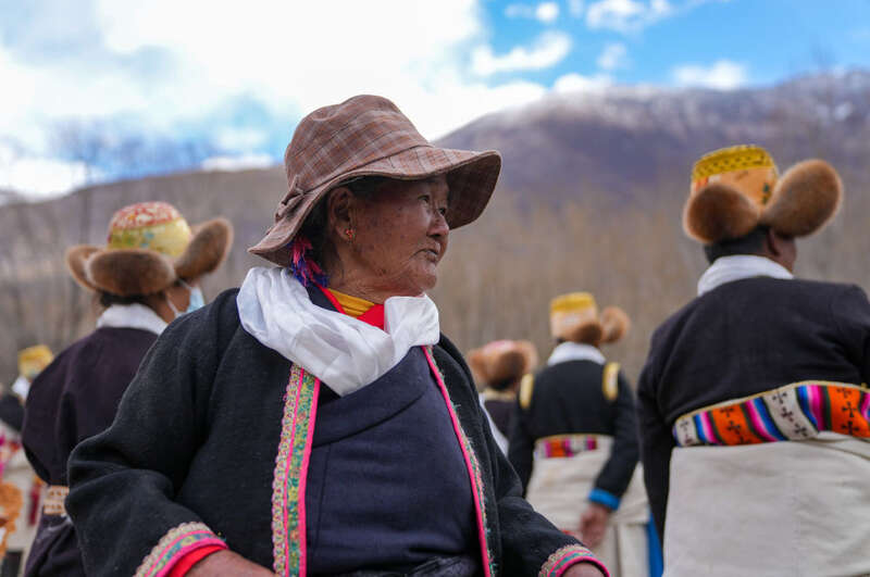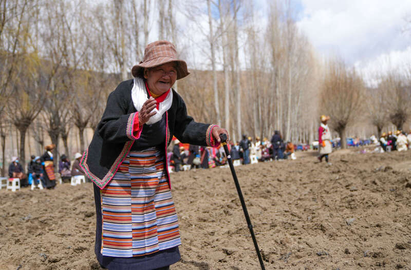 卓玛吾珠和乡亲们在庆祝春耕仪式上(3月16日摄)。