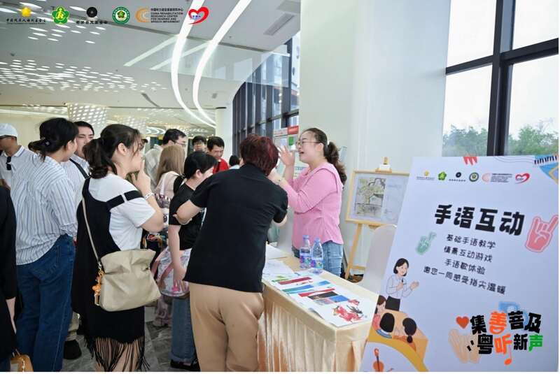 “集善菩及·悦(粤)听新声”项目举办科普打卡、手语互动、科技助残体验、听力健康义诊及爱心义卖等活动。受访者供图