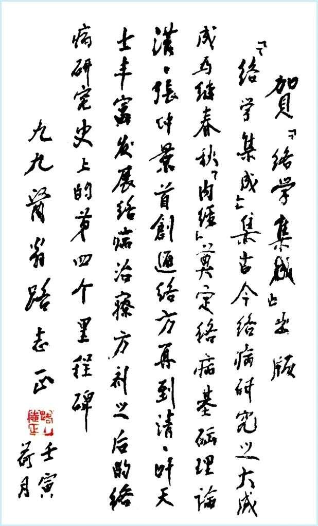 首届国医大师路志正评价:“《络学集成》集古今络病研究之大成,成为继春秋《内经》奠定络病基础理论,汉代张仲景首创通络方,再到清代叶天士丰富发展络病治疗方剂之后的络病研究史上的第四个里程碑。”