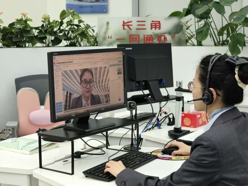 赵延琼,黄浦区政务服务中心长三角专区的服务专员。她的办公桌上,最醒目的,是“三件套”——高拍仪、摄像头、耳麦,这些是远程帮办必需的装备。通过屏幕共享实时连线,她与长三角同行为企业与个人提供跨省办事服务,实时核验材料、解答疑问、指导修改,让异地办理如同“面对面”一样顺畅。