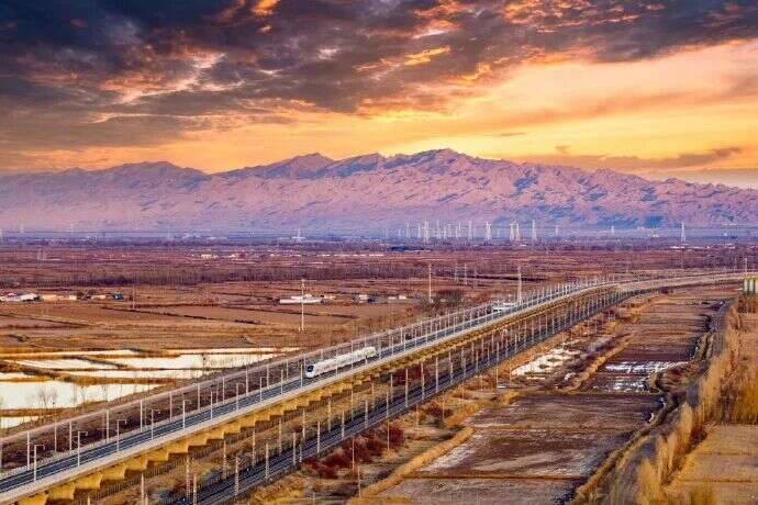 列车在苍茫原野上飞驰。(来源:草原铁路微博)