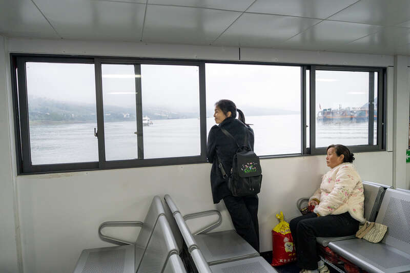 3月31日,重庆忠县长江段“新渝忠客2180”客渡船上,乘客在升级后的客舱内凭窗眺望江景。