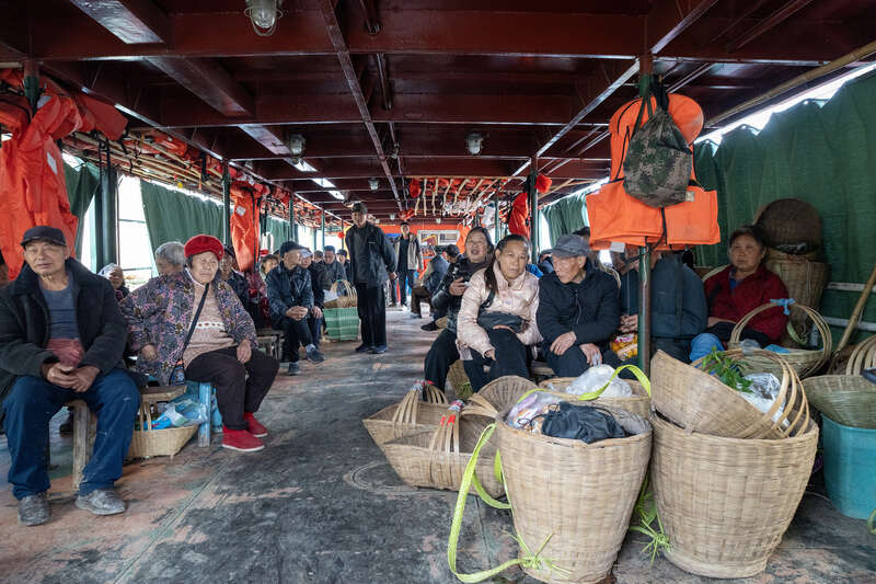 3月31日,重庆忠县长江段“渝忠客2180”船上,乡亲们与装满果蔬的背篓同舱。船龄超过10年的“渝忠客2180”存在船舶硬件老化、安全隐患突出等问题,2025年,“渝忠客2180”新船建造提上日程。