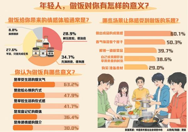 超六成受访青年感觉做饭放松、有趣