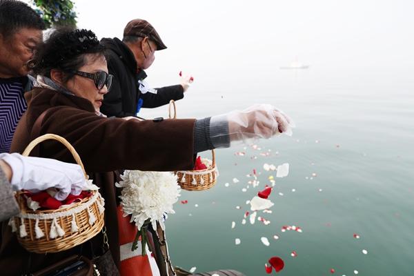 3月29日,京津冀骨灰海葬活动启航,常乐和其他36户家属一起,登上了“国宾9号”海葬专用船,在渤海之上完成了一场庄重的告别仪式。2000年,她的母亲离世。生前,母亲已交代女儿,自己不希望增加后辈祭扫的负担。但是常乐始终放不下。直到今年,在家人的支持下,在庄重仪式中,她亲手撒下红白花瓣,目送着母亲的骨灰与写满了她告别话语的信笺共同融入碧波之中。