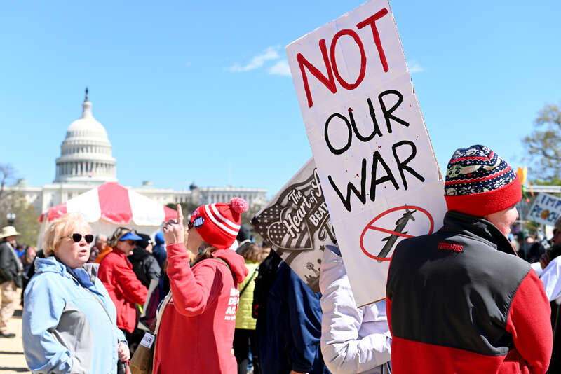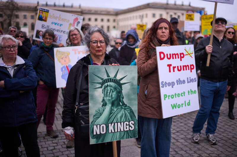3月28日,美国华盛顿,民众在白宫附近举行“不要国王”抗议活动。视觉中国供图