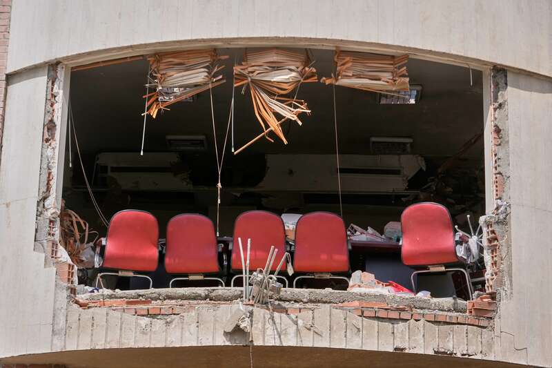 当地时间4月4日,伊朗德黑兰,美国和以色列空袭后,德黑兰大学内一处被炸弹炸出的孔洞。视觉中国供图