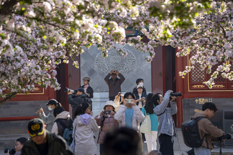 4月4日,北京,清明假期第一天,不少市民游客来到恭王府踏青赏花。视觉中国供图