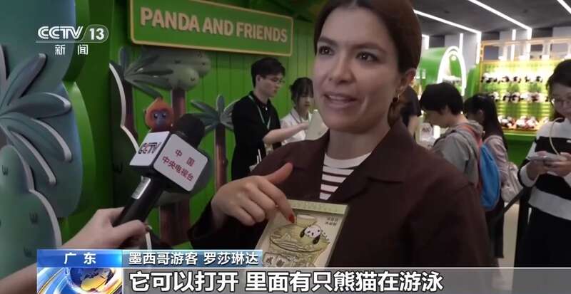 墨西哥游客 罗莎琳达:我给满分,我非常喜欢。我觉得这个很可爱,它可以打开,里面有只熊猫在游泳。