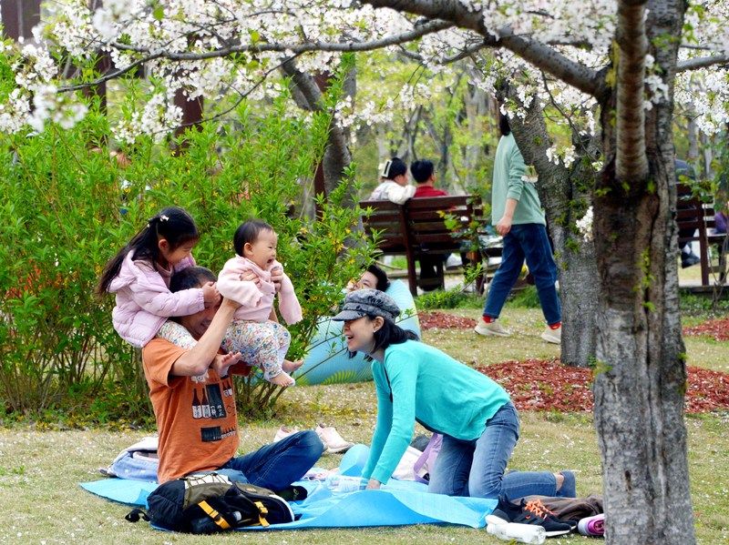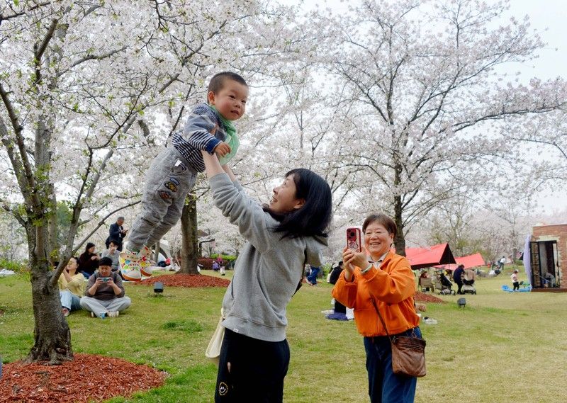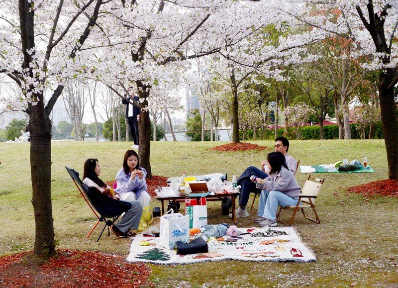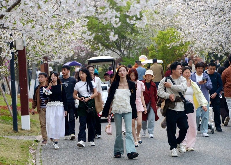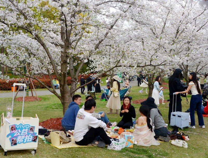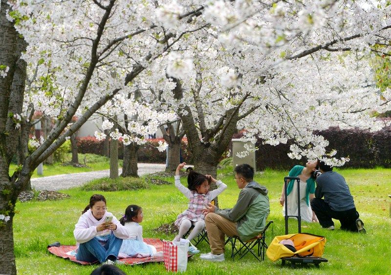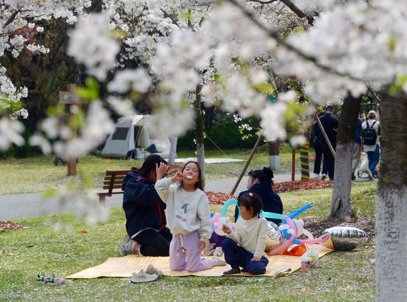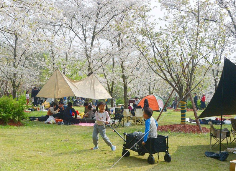 2026年4月4日,清明假期里,申城天气晴好,市民游客不负盎然春意,纷纷外出踏青赏花。沪上各大郊野公园游人如织,户外空间随处可见赏花或露营的人流,情绪价值拉动了春日经济消费。樱花盛开的顾村公园里,前来赏樱休闲度假的游客络绎不绝。据悉,当天入园游客超过了6.5万人次。