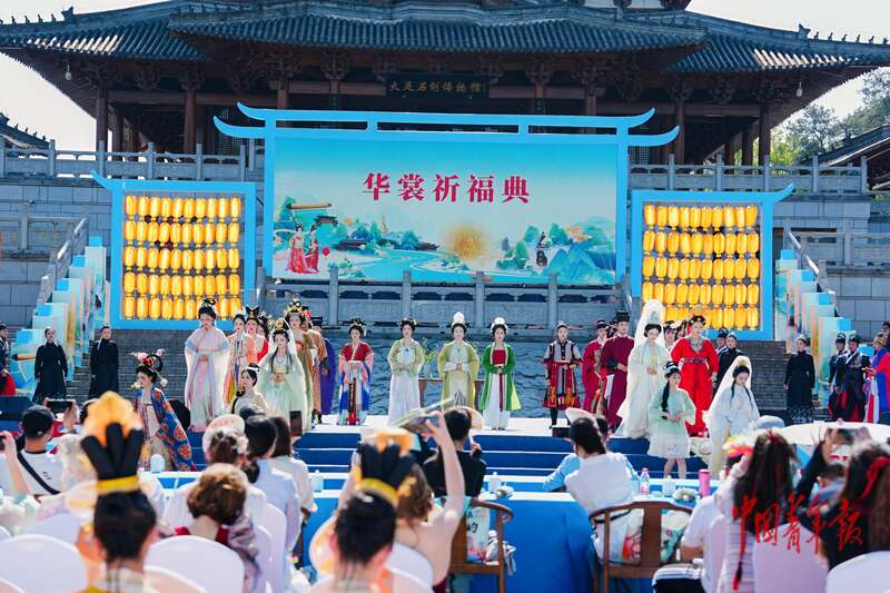 4月4日,重庆市大足区,由共青团重庆市委、共青团四川省委、重庆市文化和旅游发展委、中共重庆市大足区委、重庆市大足区人民政府主办的巴蜀文化旅游走廊——第六届大足石刻华服周开幕。当天,在世界文化遗产大足石刻前,身着各式华服的青年展示华服之美、国潮之盛,并参加“天下大足·青春礼承”华服祈福典,按照献礼、祈文、拜礼等环节依次展开。石晶/摄