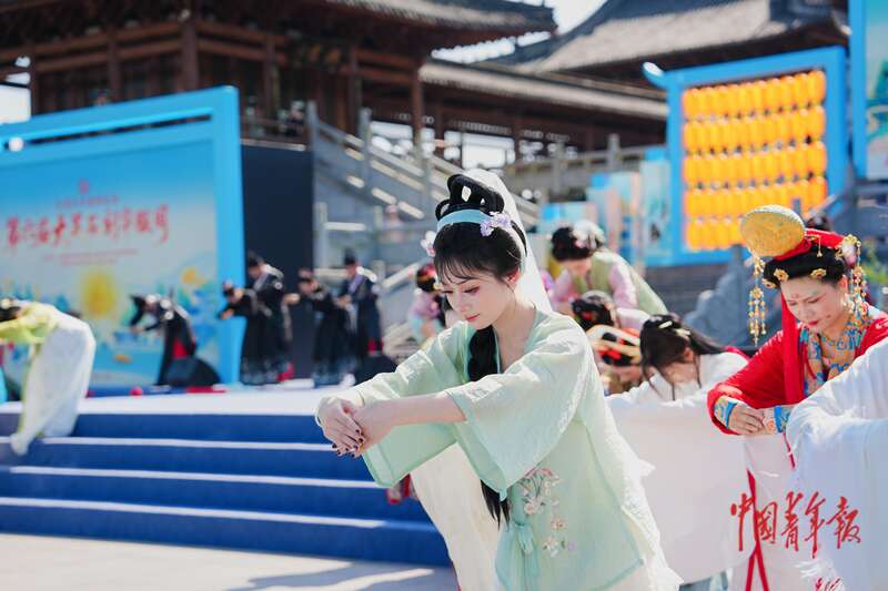 4月4日,重庆市大足区,由共青团重庆市委、共青团四川省委、重庆市文化和旅游发展委、中共重庆市大足区委、重庆市大足区人民政府主办的巴蜀文化旅游走廊——第六届大足石刻华服周开幕。当天,在世界文化遗产大足石刻前,身着各式华服的青年展示华服之美、国潮之盛,并参加“天下大足·青春礼承”华服祈福典,按照献礼、祈文、拜礼等环节依次展开。共青团大足区委供图