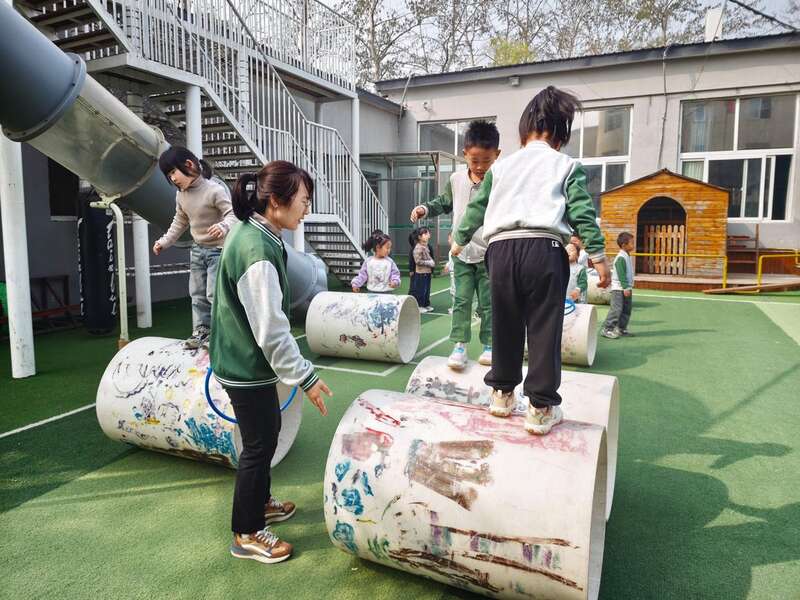 户外运动的安全保障更为系统。幼儿园配备了专业体能老师,建立了“课前评估+专业防护+实时监护”的安全体系。每周,体能老师会带着全体老师进行教研,学习如何正确执行动作、如何保护孩子,让孩子在掌握方法的基础上安全挑战。