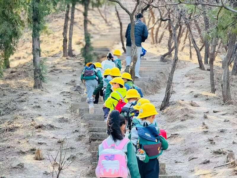 前不久,孩子们去了昌平卧龙堂爬山。爬山时,孩子们自己背着水杯和便当。3岁的可心是队伍里最小的一个,有地方的台阶又陡又窄,她的腿要迈很大一步才能跨上去。老师问她需不需要帮忙背书包,她摇摇头:“我自己来。”最陡的一段,孩子们手脚并用,像小猴子一样往上爬,老师在旁边保护着。爬了大约一小时,大家终于到了目标小亭子。路过的叔叔阿姨竖起大拇指:“你们这些小朋友太厉害了!”