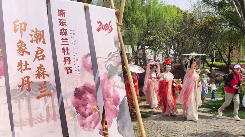 2026年4月6日,上海。人间四月芳菲尽,国色天香赏牡丹。这几天,2026浦东森兰牡丹节正在浦东牡丹园里举行,各品种牡丹花姹紫嫣红,争奇斗艳。本届牡丹节以“印象牡丹·潮启森兰”为主题,在品种规模、文化活动、消费体验等方面全面升级,中心湖水域国风汉服翩跹、乐韵流转;花神巡游园区与游客互动,尽显国风雅韵。据悉,本届牡丹节将持续至4月26日。