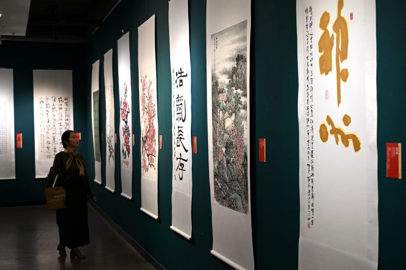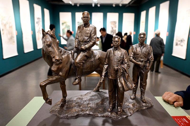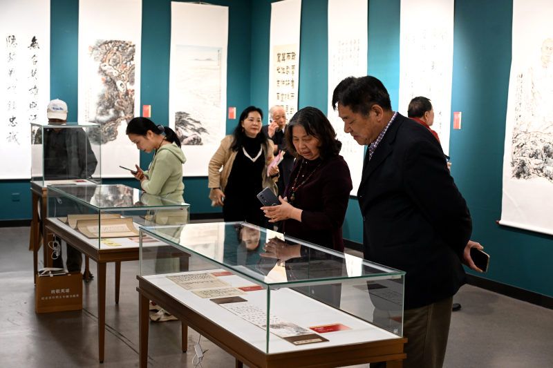 2026年4月8日,“致敬英雄——纪念吴石烈士专题书画展”在福州画院开幕。作为全国首个纪念吴石烈士的专题书画展,本次展览集中展出吴石情报组“六烈士”(吴石、朱枫、陈宝仓、聂曦、王正均、林志森)及后人书法作品,同时展出百余名书画家、雕塑家创作的书法、国画、雕塑等作品。 中新社记者 吕明 摄