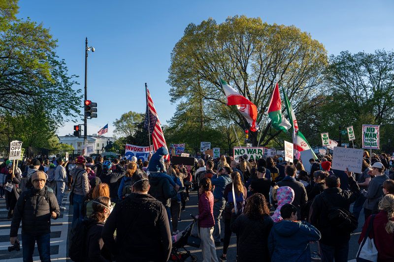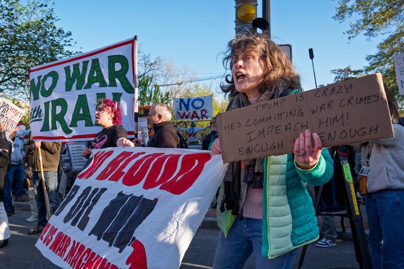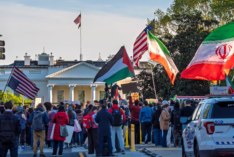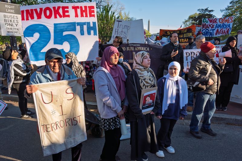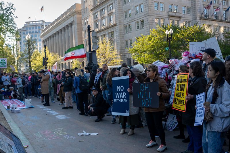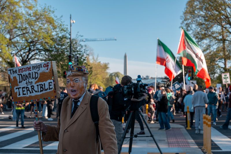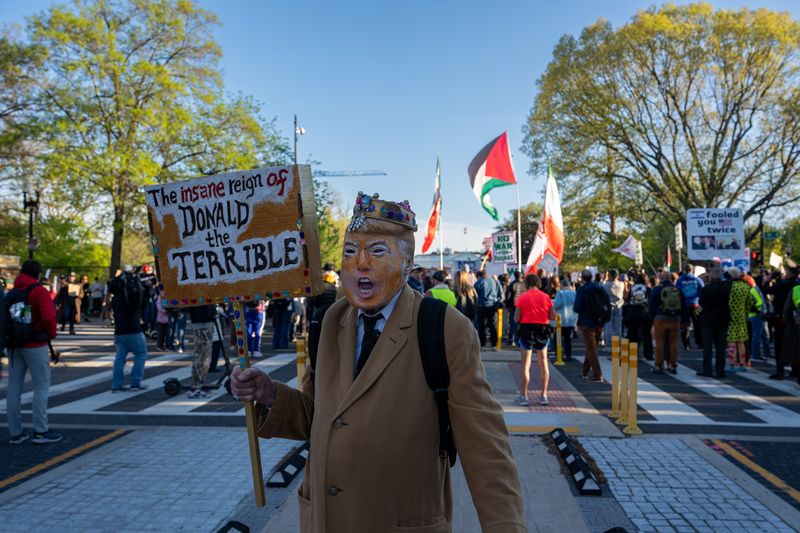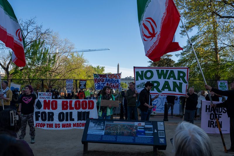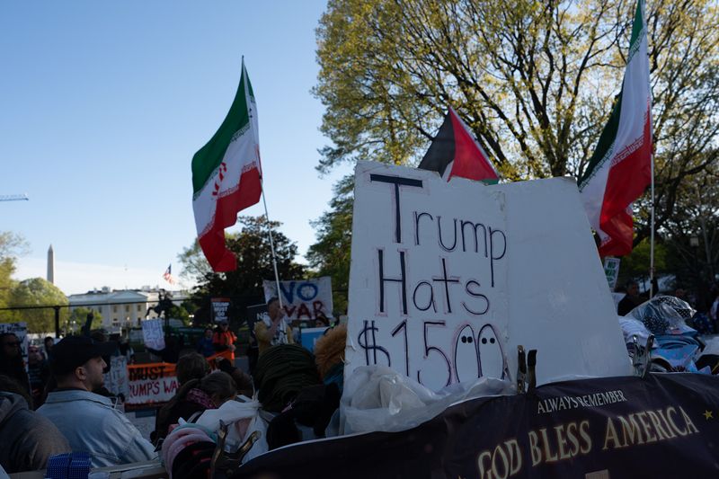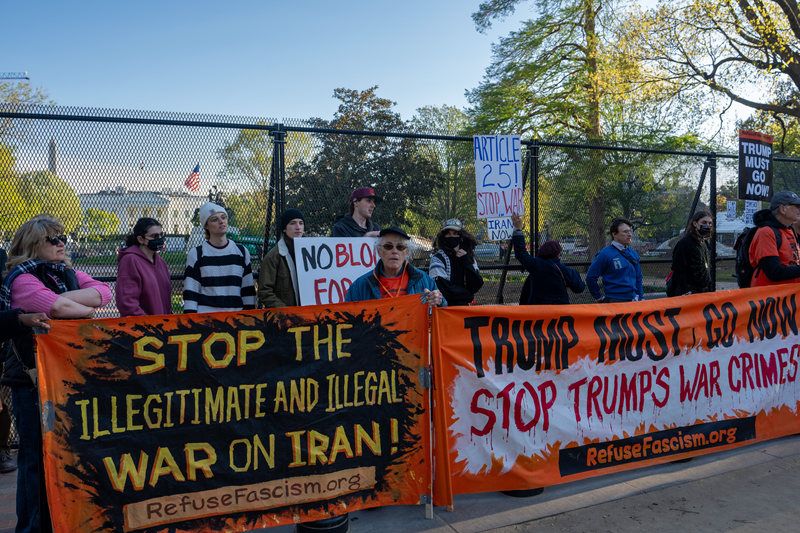当地时间2026年4月7日,美国华盛顿特区,抗议者在白宫附近举行抗议活动。